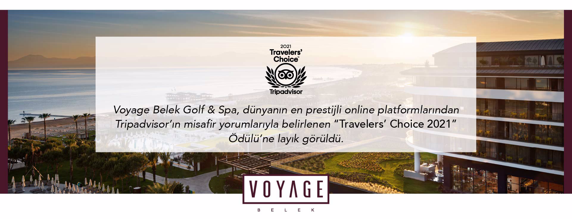 Voyage Belek Golf & Spa, dünyanın en prestijli online platformlarından Tripadvisor’ın misafir yorumlarıyla belirlenen “Travelers’ Choice 2021” Ödülü’ne layık görüldü.